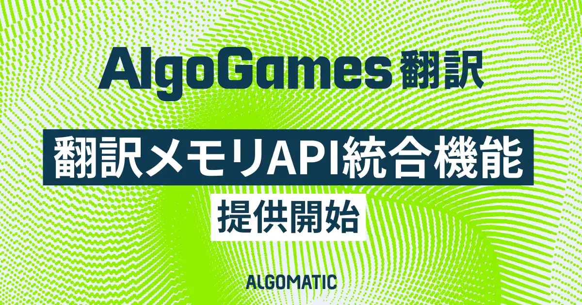 株式会社Algomatic(本社:東京都港区、代表取締役社長:大野峻典)は、AIとプロ翻訳家の協働による新世代の翻訳サービス『AlgoGames 翻訳』において、翻訳メモリAPI統合機能を提供開始したことをお知らせいたします。本機能により、ゲーム翻訳AIエンジンと翻訳メモリ(Translation Memory /