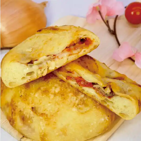 | 旬の新玉ねぎを主役にした、自家製アラビアータソースがアクセントのカルツォーネ。B²のシグネチャーカンパーニュ「デュラム」の生地を使用し、焼きトマトやマッシュルームの旨味とともに春野菜の甘みを楽しめる一品です。 | |||||||||||||