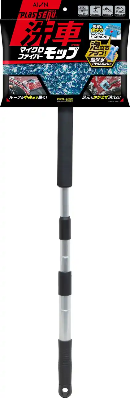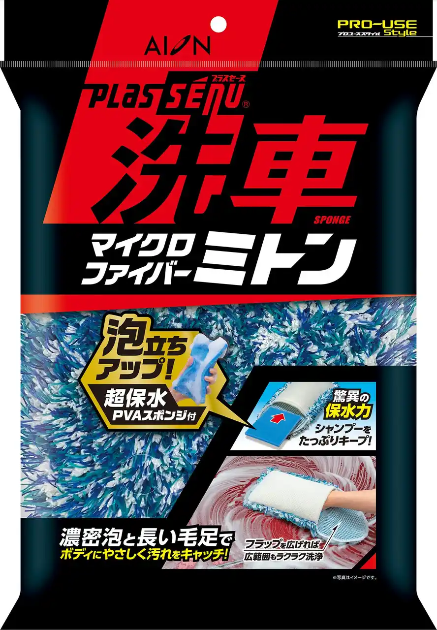 吸水性に優れたポリビニルアルコール(以下PVA)製の吸水スポンジクロス「プラスセーヌ」を中心にカーケア用品を展開するアイオン株式会社(代表取締役社長:中村勝)は2026年3月より、洗車時の摩擦による微細なキズを抑える「プラスセーヌ洗車スポンジ マイクロファイバーモップ」と「プラスセーヌ洗車スポンジ マイクロファイバーミトン」を全国のカー用品店等で発売します。 |