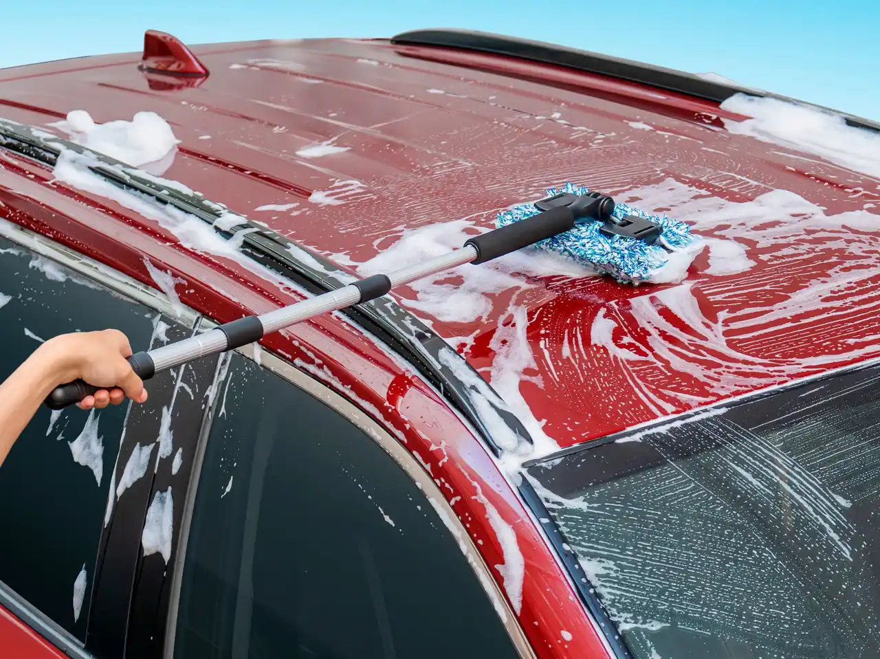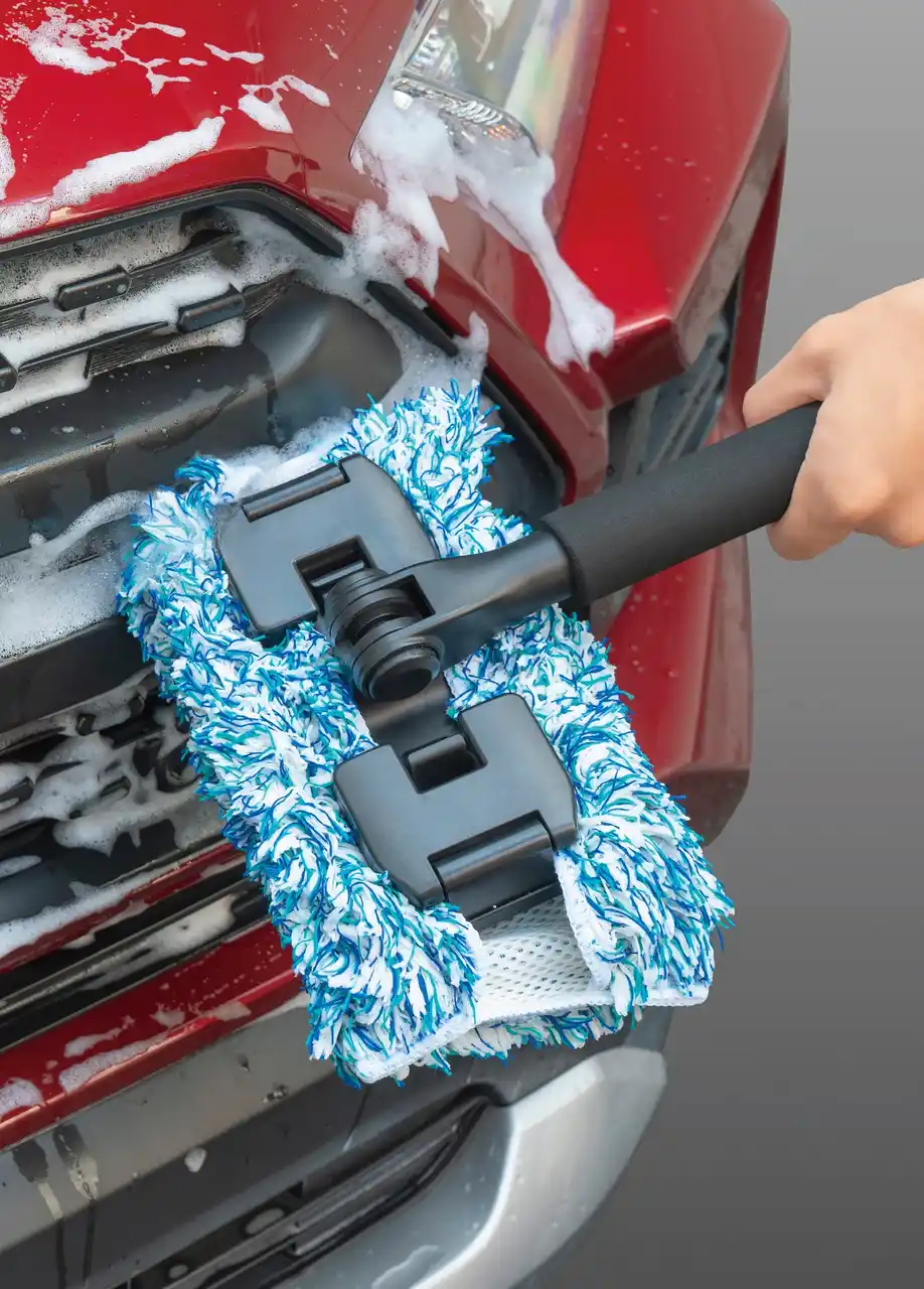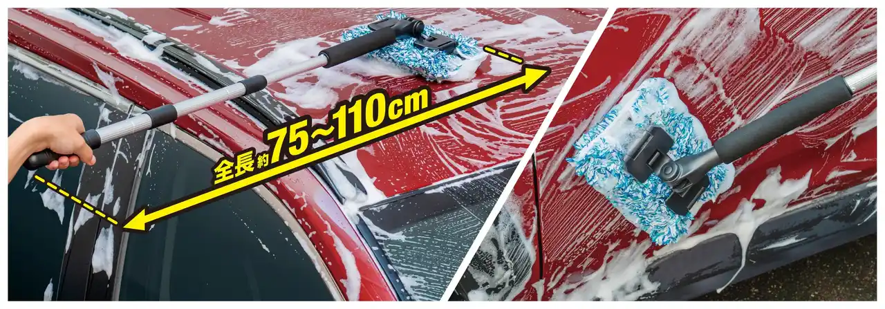 取り回しの良い3段伸縮ハンドルを採用。ルーフや足元に合わせた長さに調整可能で、収納もコンパクト!ヘッドを洗いやすい角度に固定できしっかり力が伝わります。 |