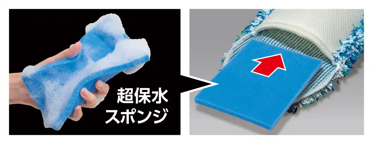 独自開発のPVA製「超保水スポンジ」とマイクロファイバーの組み合わせで泡立ち性能を大幅強化!