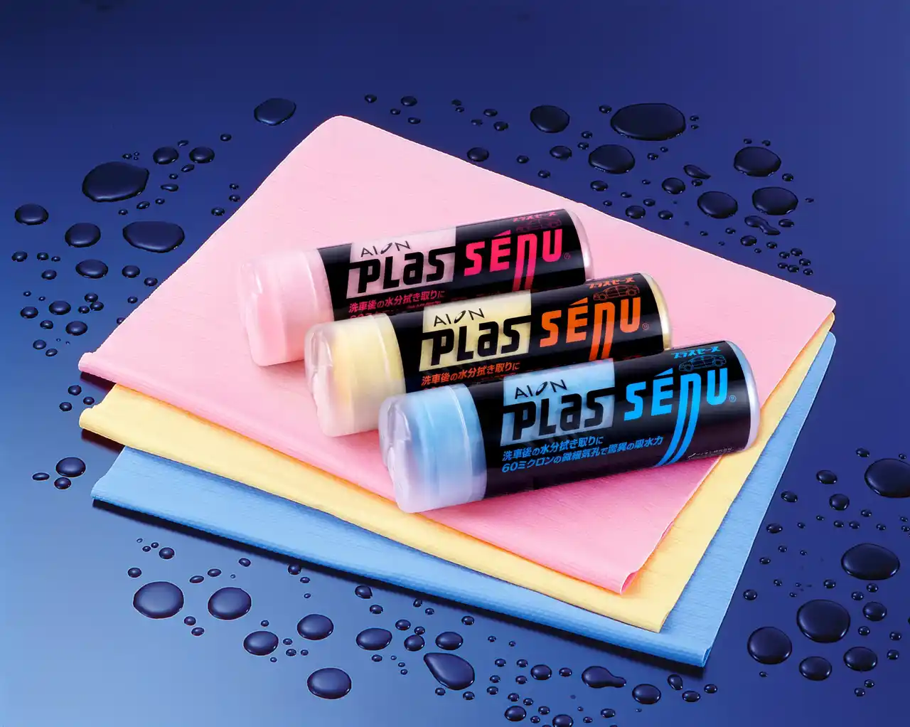 プラスセーヌは当社独自技術により約60ミクロンの微細な気孔を網目状に張り巡らせる構造を実現した、ポリビニルアルコール製の吸水スポンジ(以下PVAスポンジ)です。 水滴をすばやく吸収し、洗車後の車のボディに残った水滴をスパッと拭き取ります。 全体積の約90%が気孔となっており、乾燥重量比700%の水を保持します。 PVAスポンジの中にポリエステル繊維の芯材が入っているため、引っ張っても破れにくく、耐久性にも優れています。 |