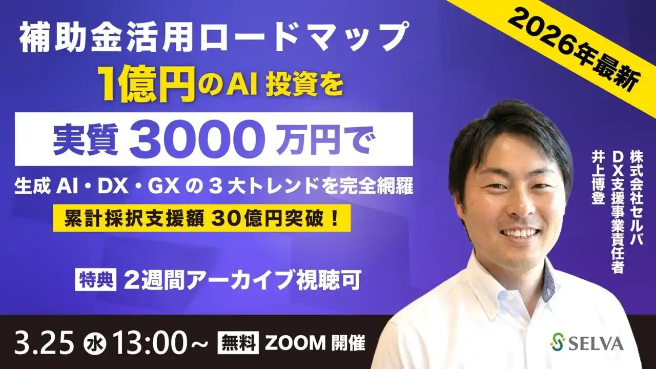 | 「補助金を使って賢くDXを進めたい」「申請の勝率を1%でも上げたい」とお考えの経営者・担当者様、この機会をぜひお見逃しなく! | |||