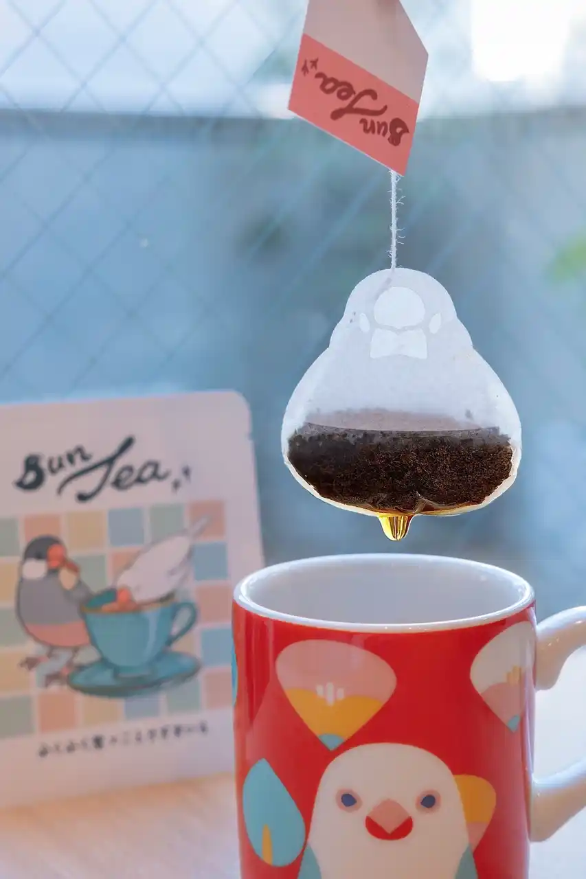 バッグの部分が文鳥の形になった、遊び心たっぷりのティーバッグ。 |