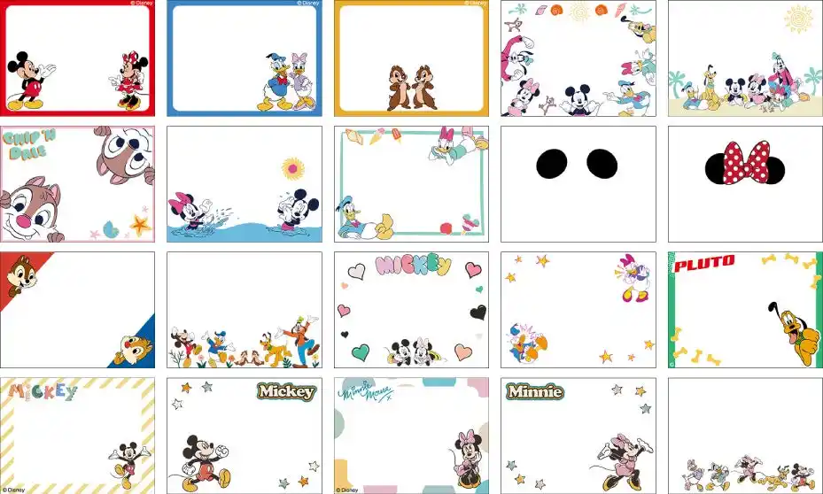 | ミッキー&フレンズの20種類のフレームがにぎやかに写真を彩ります。 | |||