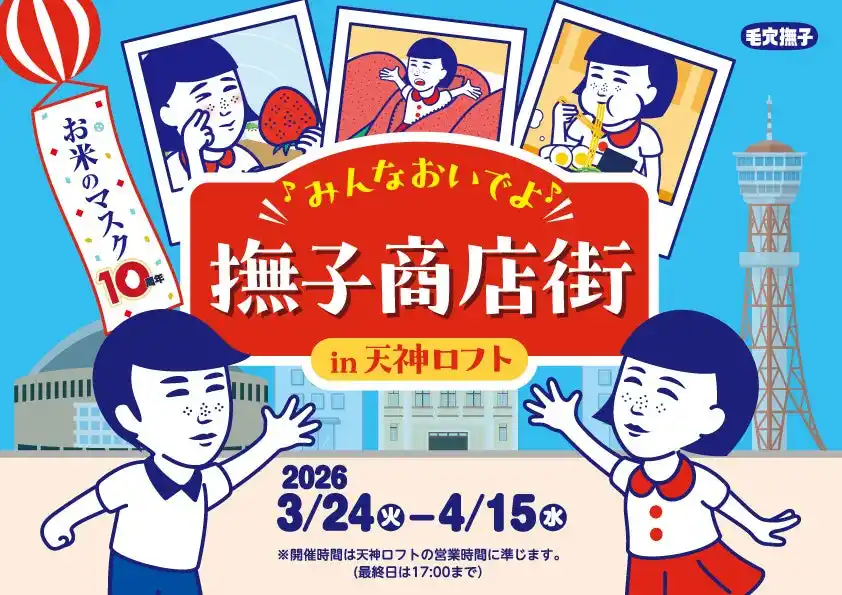| 株式会社石澤研究所(東京都渋谷区)は、大人気のシートマスク「毛穴撫子 お米のマスク」の発売10周年を記念して、福岡県を対象とした大型プロモーション『\感謝コメコメ/お米のマスク10周年プロモーションin福岡』を実施いたします。駅階段のラッピング・テレビCM・ラジオCMなど撫子ちゃんが福岡のそこかしこに登場します。https://www.ishizawa-lab.co.jp/keananadeshiko/event/202603-fukuoka/ | |||||||||||||
