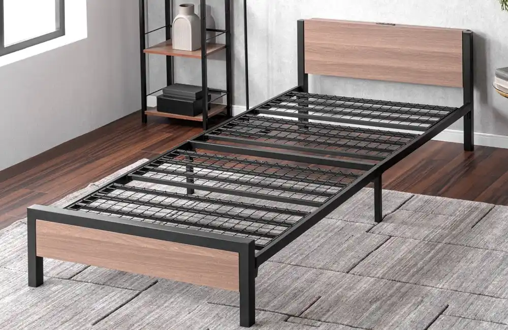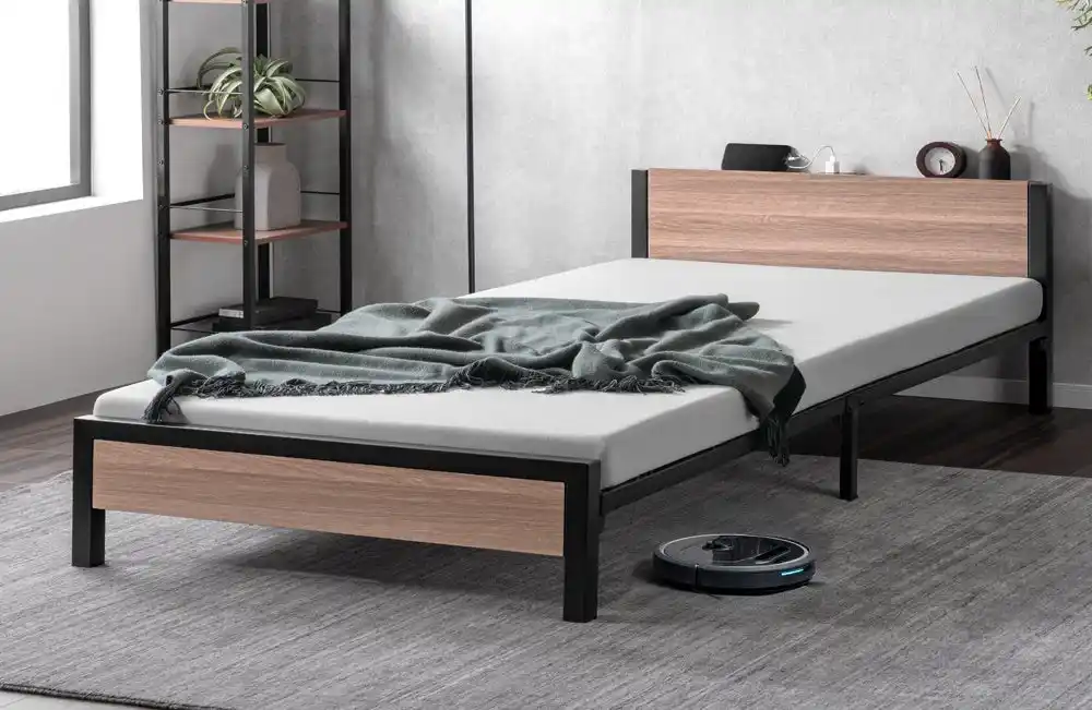 ◇お部屋に馴染みやすい木目調スチールベッド |