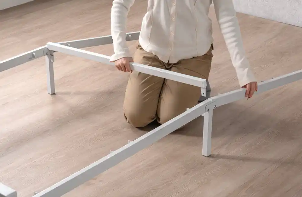 本製品は、パネルやフレームを差し込むだけで完成するスチールベッドです。差し込むだけなので組み立てができ、工具を使用しないため、組み立てが苦手な方でも簡単にベッドを完成させることができます。 |