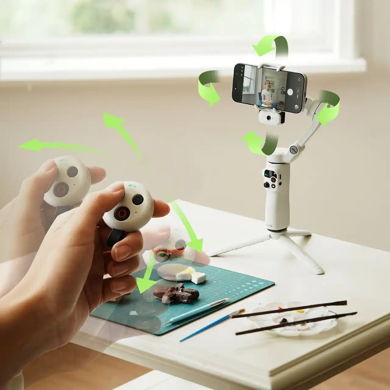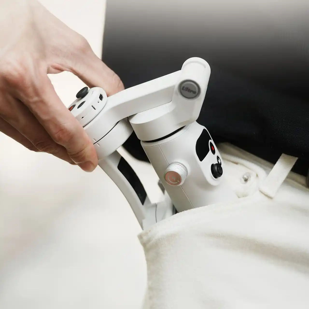 | ハンドル部分には、ケーブルの制約なく遠隔操作が可能な着脱式ワイヤレスリモコンを搭載しており、専用スロットに収納も可能です。また、手首の動きでジンバルの向きを直感的に操作できる「モーションセンシング(体感操作)」に対応し、没入感のある操作体験を提供します。 | |||