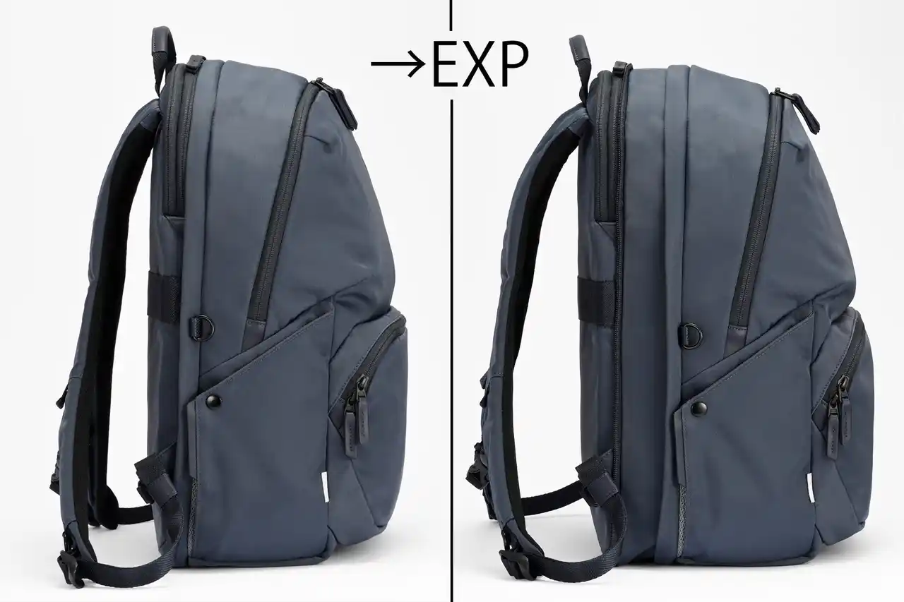 荷物の量に応じてマチ幅を広げられるエキスパンダブル機能を搭載。保育園グッズや会社帰りの買い物など、急に荷物が増えても安心です。 |