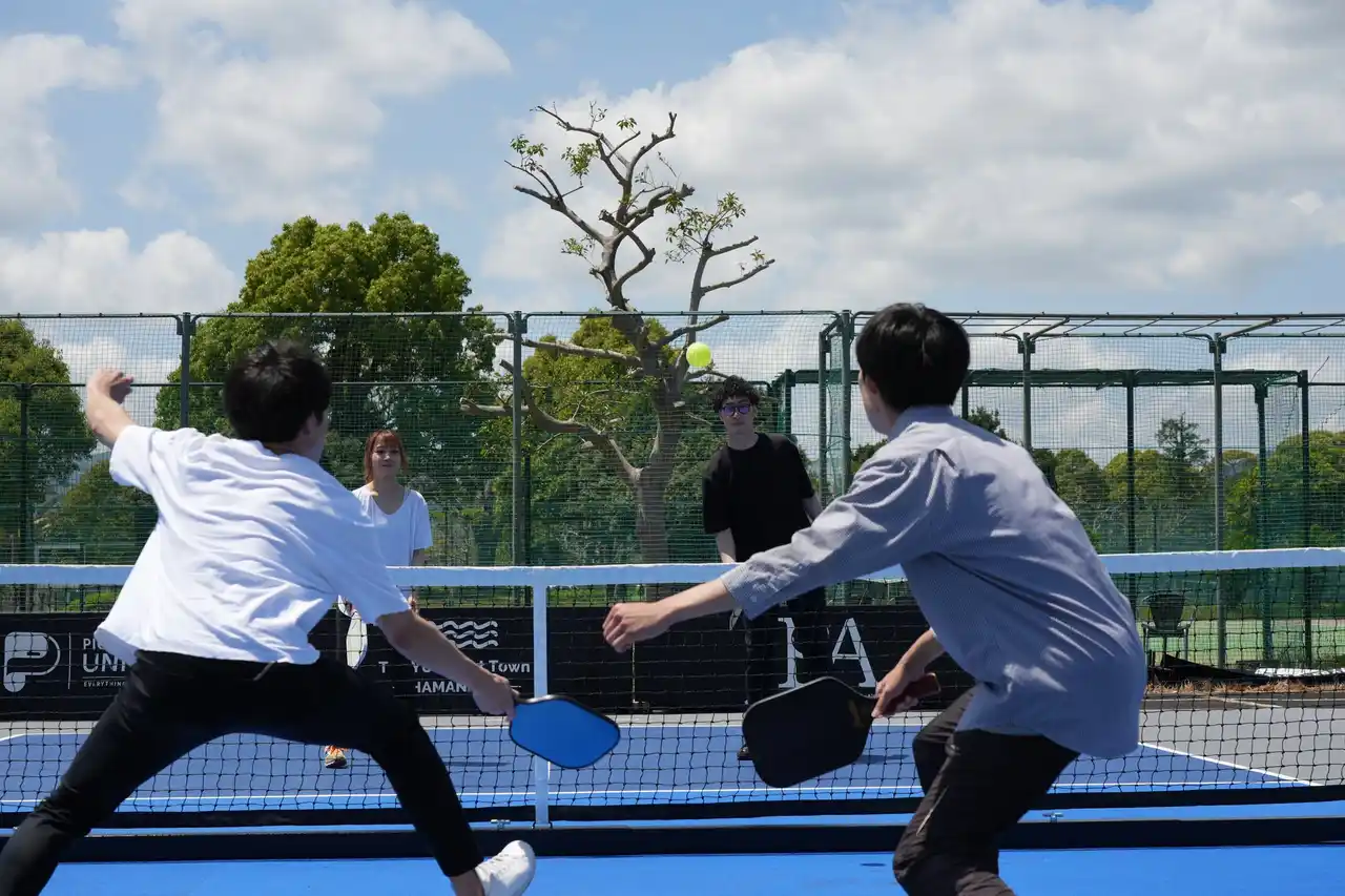 リゾートタウン浜名湖では、2023年11月に日本ピックルボール協会(以下、「JPA」)への加盟にくわえて2024年4月にスポンサード契約を締結。本コートを使用しての大会開催や無料体験会の実施などを通じて、日本国内での競技人口の増加と健康増進を目指し普及活動へ貢献してまいりました。今後も穏やかなで開放的なリゾート地ならではの環境を生かし、誰もが気軽に屋外でのプレーを楽しむひとときをお届けします。 |