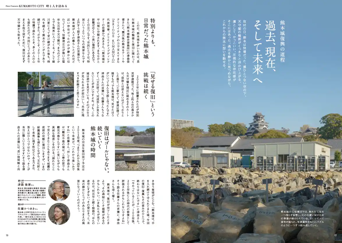 リニューアル初号となる4-5月号の第一特集は、震災から10年の熊本市。復興の象徴・熊本城を起点に、街歩きの一歩先へ。地元民すら気づかない“隠れた名店”や魅力的な“人”を深掘りし、今の熊本を動かす熱い鼓動をディープに伝えます。 |