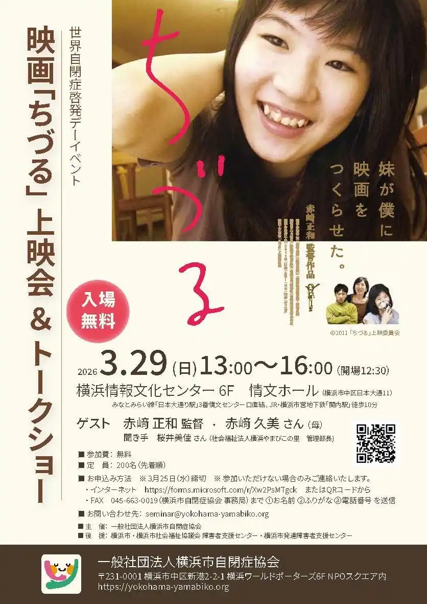 自閉スペクトラム症の女性・ちづるさんとその家族の日常を丁寧に描いたドキュメンタリー映画『ちづる』の上映会を開催します。上映後には、監督であるお兄様とお母様をお迎えし、映画制作当時から現在に至るまでの生活や思いを語っていただきます。 |