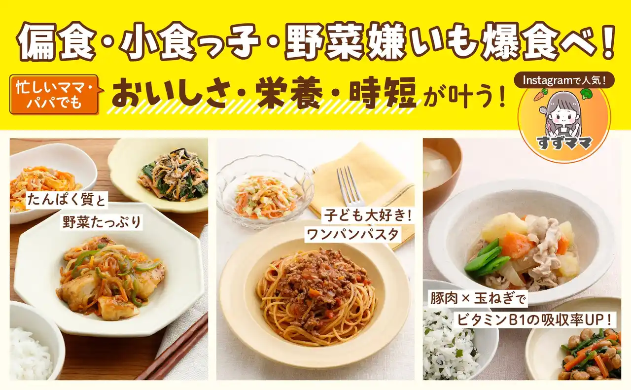 すずママ 管理栄養士・2児の母。7年以上にわたり、同時に10施設以上の献立作成に携わった経験を持つ。給食の良さを家庭向けにアレンジした「おうち給食」をテーマに、レシピを発信。偏食の子どもと向き合う中で、食べやすさと栄養バランスを保ちながら、工程をできるだけ減らし、毎日続けやすい調理の工夫を重ねてきた。苦手な食材も自然と食べ進められる工夫が詰まった献立は、全国の家庭から「これなら食べた!」と喜びの声が殺到。毎日のごはんに悩むママ・パパから厚い支持を集める。SNS総フォロワー数は14万人。 Instagram @suzu_mama_recipe |