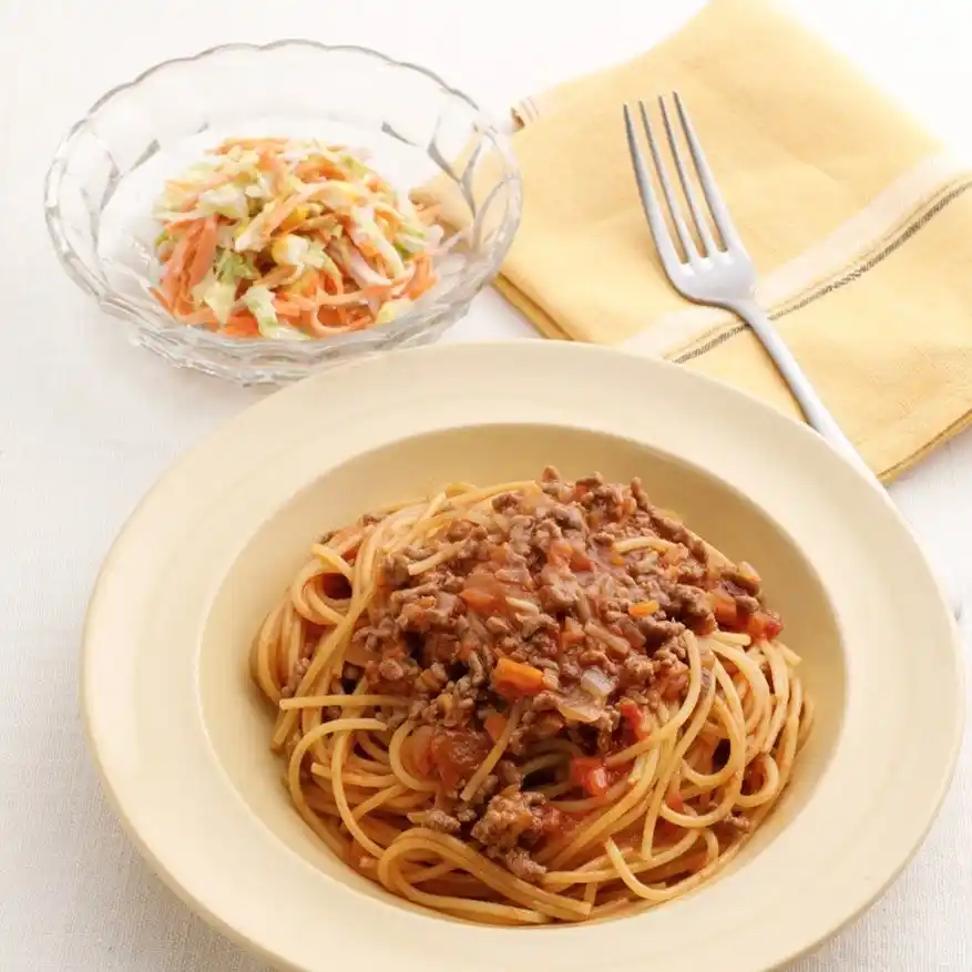 子どもも大好き! ワンパンで作れるパスタとマヨサラダ ミートパスタの献立 |