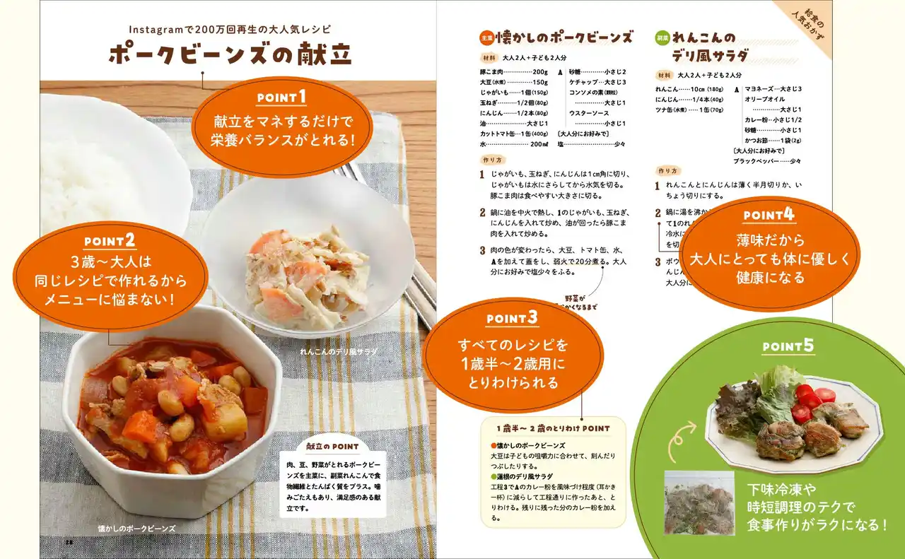 すべてのレシピが1歳半~2歳の子どもにもとりわけOK |