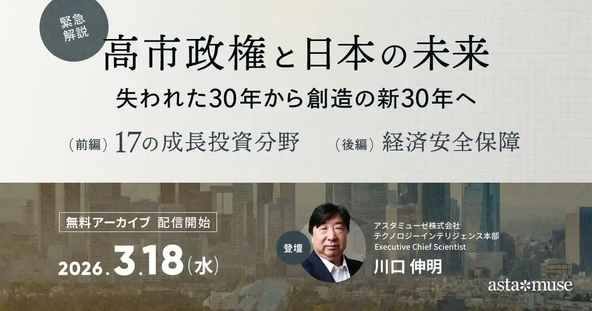 【アスタミューゼ株式会社】 【本日3月18日(水)~無料アーカイブ配信開始】高市政権「17の成長投資分野」と「経済安全保障」を徹底解説|データ分析で示す日本企業の勝ち筋