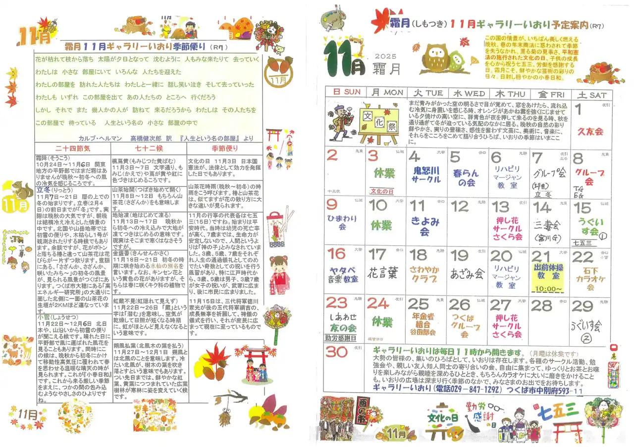 ギャラリーいおりは、設立当初から地域とのつながりを何より大切にしてきました。手作りチラシを近隣に配るところから始まり、今では近所の方が玄関先に大根を置いていってくれるほど、温かく親密な関係が築かれています。 |