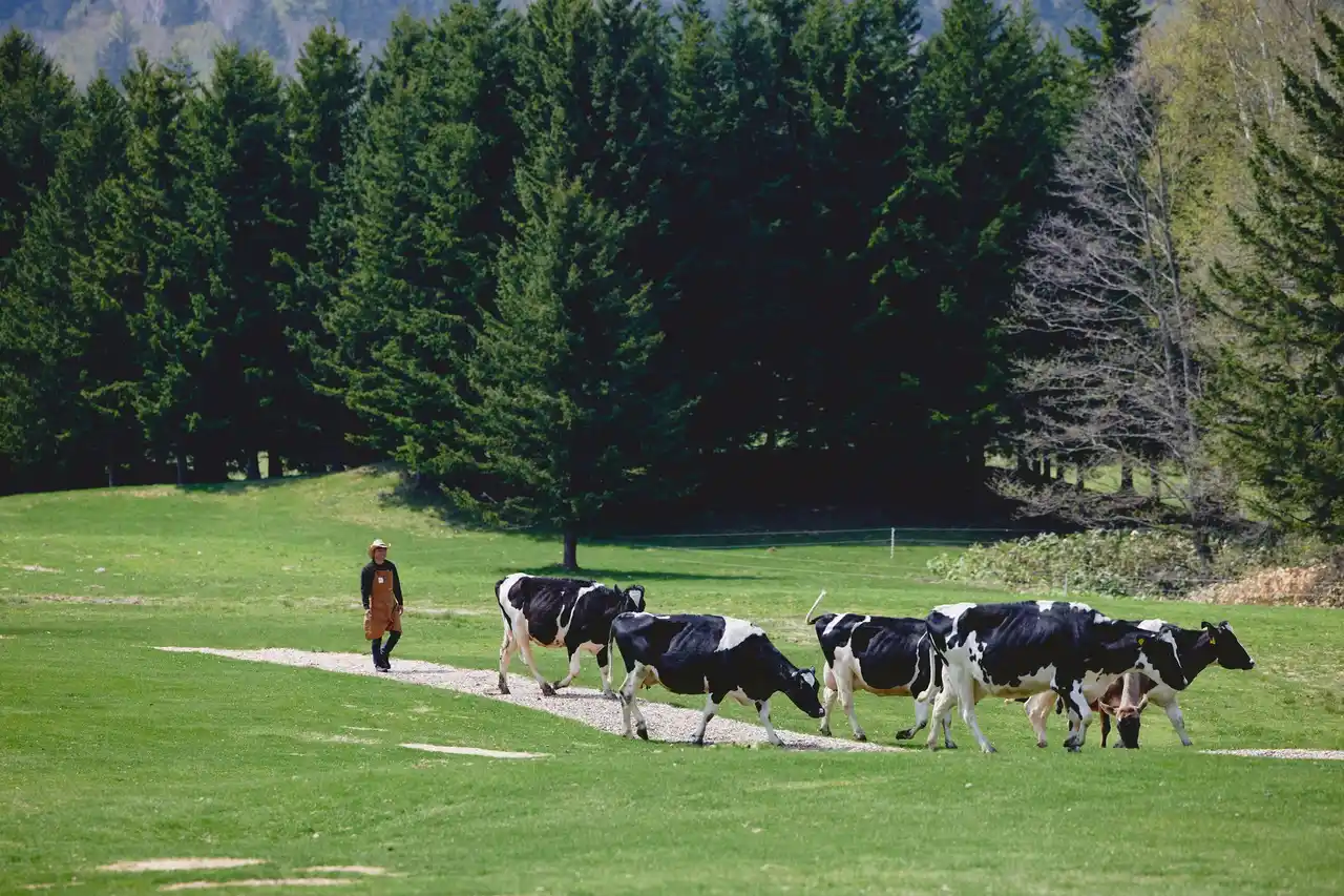 | トマムの長い冬を牛舎で過ごした牛たちが、青々とした牧草地へ一斉に駆け出す「親牛の放牧はじめ」を公開します。半年ぶりの外の世界に喜び、跳ねるように駆けていく牛たちの姿は、北海道に本格的な春の訪れを告げる風物詩です。その他にも、ファーム星野の乳製品から生まれたホエイ(乳清)を使った石鹸づくりや、子牛に哺乳瓶で牛乳をあげる体験など、子どもも大人もトマムの恵みを感じながら楽しめる内容が盛りだくさんです。 | ||||||||||||