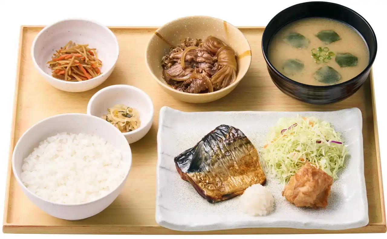 サバの塩焼とミニすき焼きランチ 1,090円 |