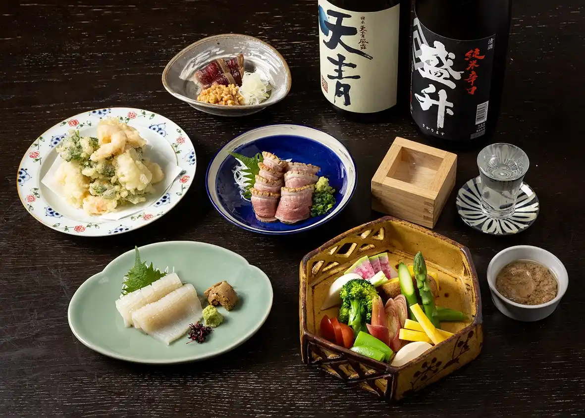 生産者の手仕事や自然の恵みへの敬意を込め、日本の食文化の豊かさを未来へつないでいきたいという想いから生まれたひと品を提供します。 |