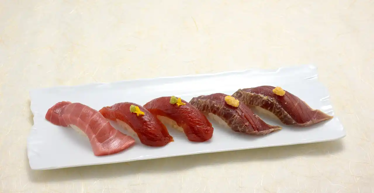 天然鮪づくし 食べ比べ5貫 2,500円(税抜) |