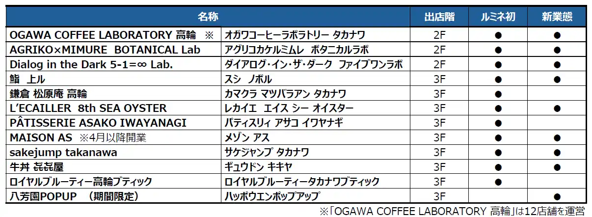・名称 :ニュウマン高輪(約60,000平方メートル 、約180店舗) |