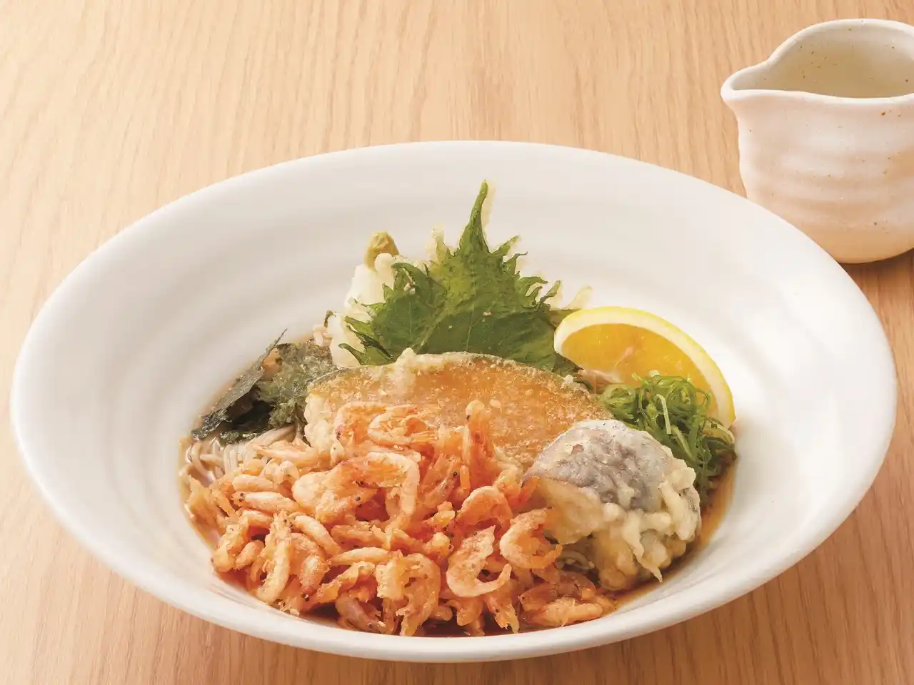 駿河湾産の桜海老を使用。香ばしくころころと天ぷらに仕上げた桜海老をたっぷりとのせ、海老の旨みと食感を存分に味わえる一杯です。あっさりとした上品な仕立てで、春らしい華やかな見た目もお楽しみいただけます。 |