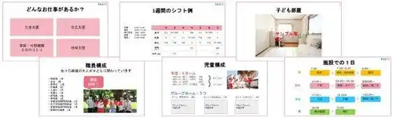 <施設の説明資料を事前に添削&アドバイス> 社会的養護施設には広報専任の担当職員がいないため、何をどのように伝えれば良いかわからないという施設も少なくありません。そのため、限られた時間の中で施設の魅力が伝わるように、チャイボラがプレゼンテーション用のテンプレートを提供したり、内容のアドバイスや添削をしたり、施設の魅力が求職者にきちんと伝わるためのサポートをしています。 |