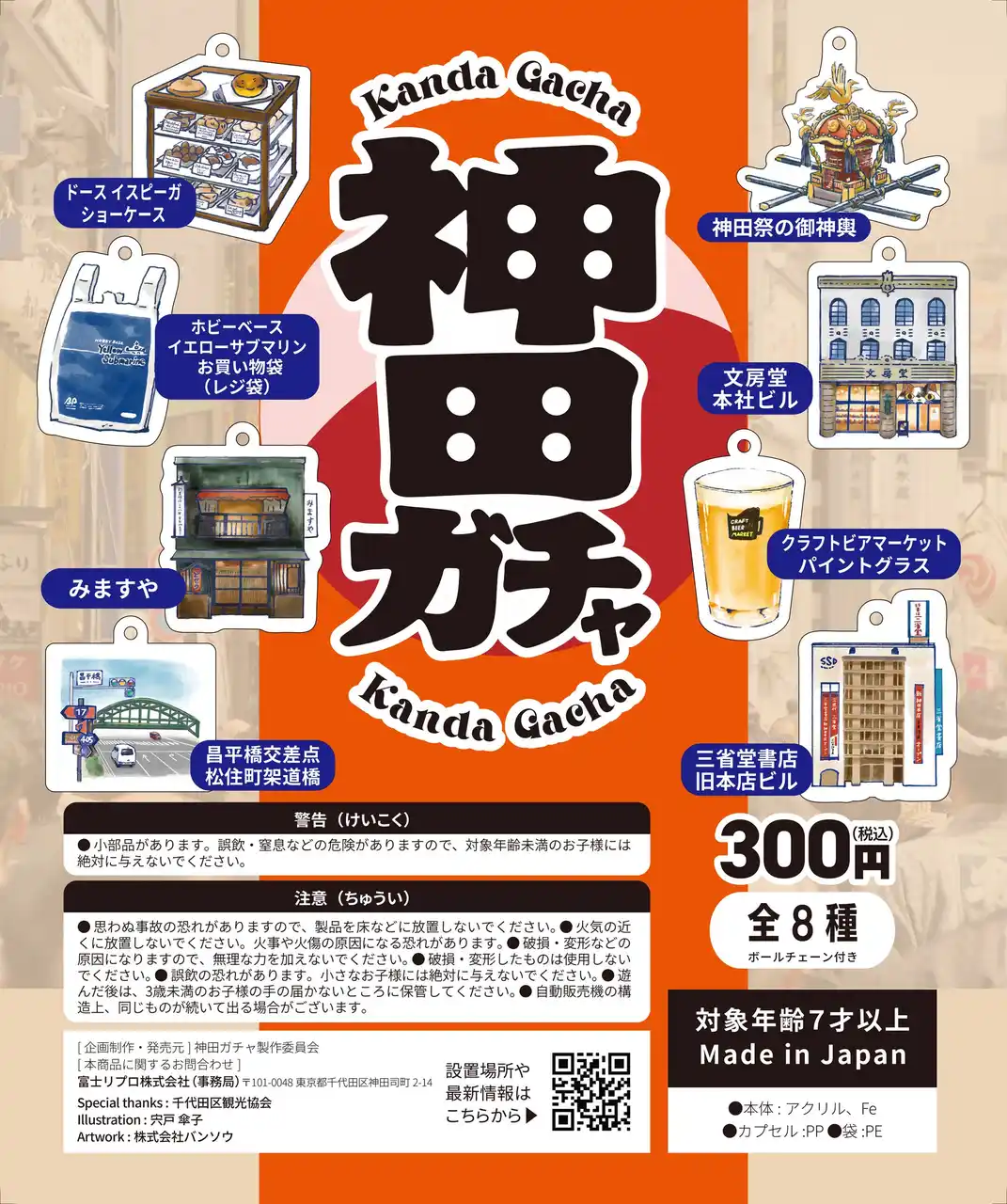 神田ガチャ製作委員会(事務局:富士リプロ株式会社)では、神田の魅力を伝える新しいツールとして「神田ガチャ」を企画、一般社団法人千代田区観光協会様や地域事業者の皆様のご協力のもと、8つのモチーフを温かみのあるカプセルトイにしました。2026年3月19日(木)から販売を開始します。 |