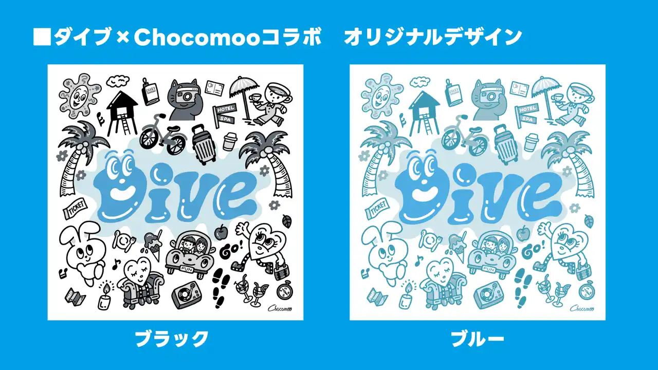 この度、リゾートバイトダイブは、国内外から支持を集める大人気イラストレーター『Chocomoo(チョコムー)』 とのコラボレーションによるオリジナルデザインを制作しました。 |