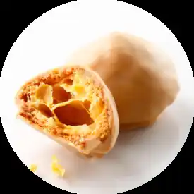 サクサクのシュー生地をホワイトチョコレートで包み、ホワイトシュガーをまとわせました。 |