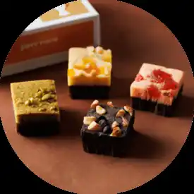 『ピュアココ トーキョー』の代表商品である「ピュアココ」の2フレーバーが楽しめるハットボックスと、グラッセしたオリーブをホワイトチョコレートでコーティングした「ピュアココ オリーブ」、ハイブリッドスイーツ「ブルッキー」の3種をセットにしたお得なセットです。 |