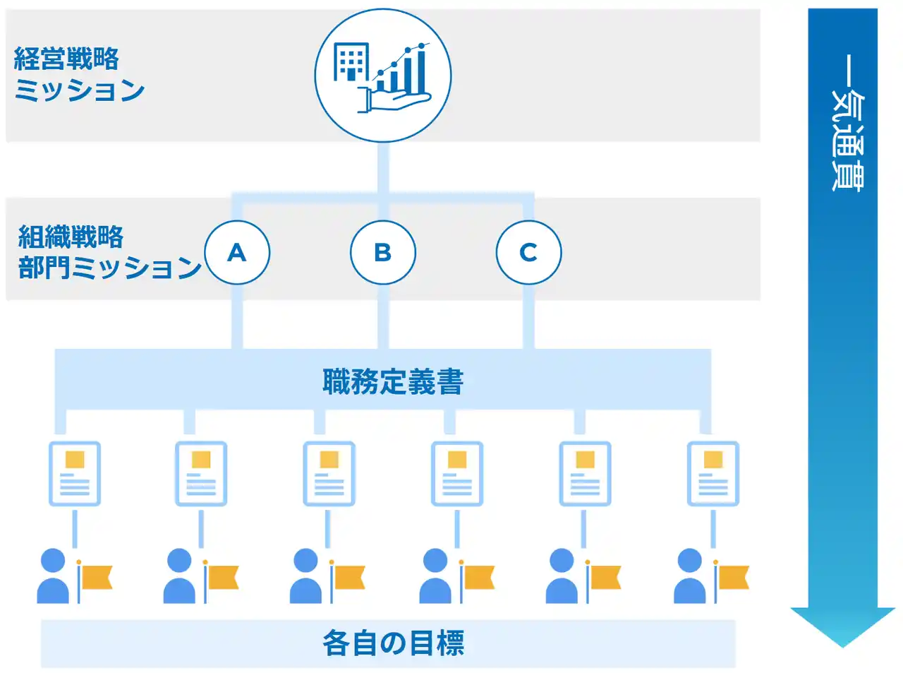 ジョブ型人事制度の構造(戦略 → JD → 個人目標) |