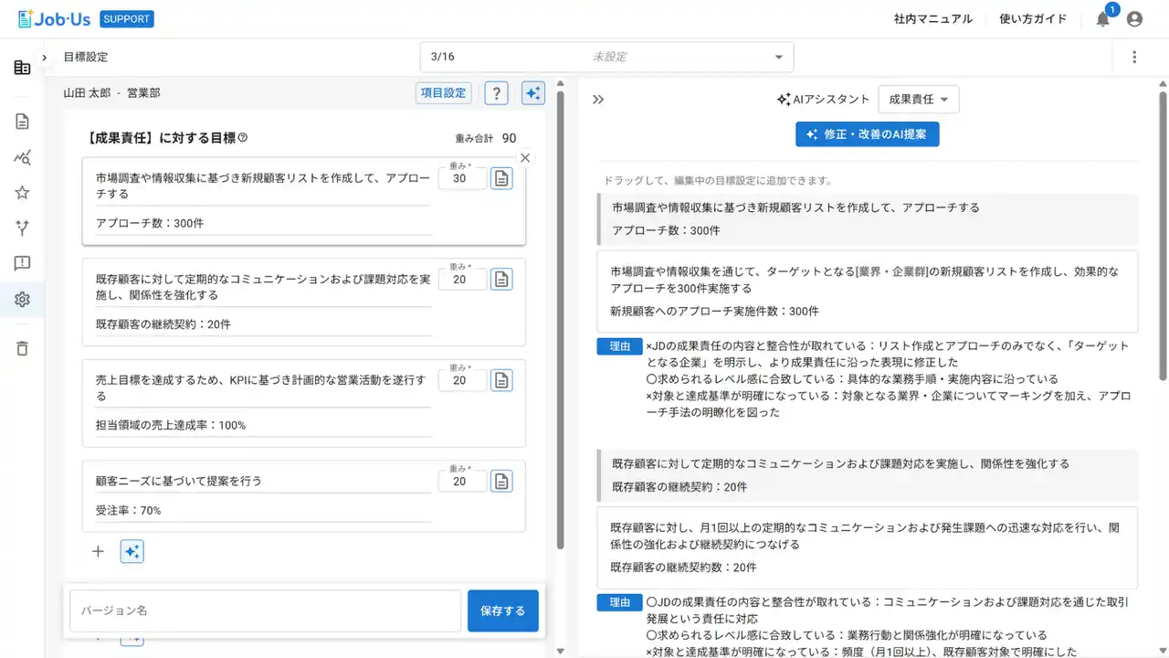 2.JDに基づき、より適切な目標の改善案をAIが生成 |