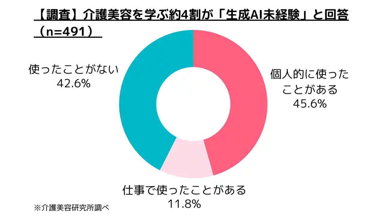 | 介護美容研究所がケアビューティストを目指す受講生491名を対象に実施した調査では、生成AIに対して | ||||||||||||