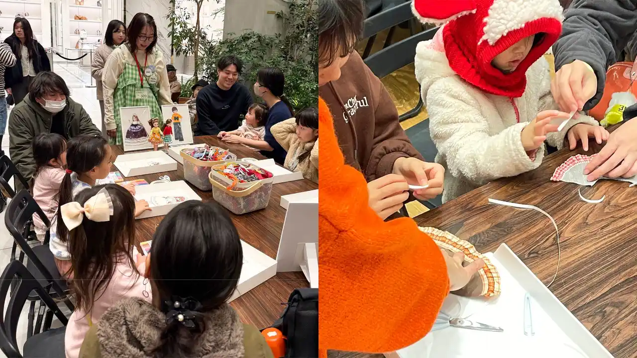 お直しとワッペンのお店「PATCH&PLAY」でも活躍するクリエイターを起用したメインビジュアルの制作や、親子で楽しめるアップサイクル体験ワークショップ「リカちゃんのアップサイクルアトリエ」を企画・実施。さらに、クリエイティブコミュニティNewMakeがセレクトしたクリエイター5組による作品展示も行いました。ワークショップは全3回開催され、計34名が参加。事前予約は受付開始からわずか2日間で全枠が満席となりました。3回目は当日抽選受付としたところ、多くの来場者が抽選券を手に開始を待つ姿が見られるなど、高い関心を集めました。また、参加者アンケートでは満足度「星5つ」が98%と、非常に高い評価を得ました。 |