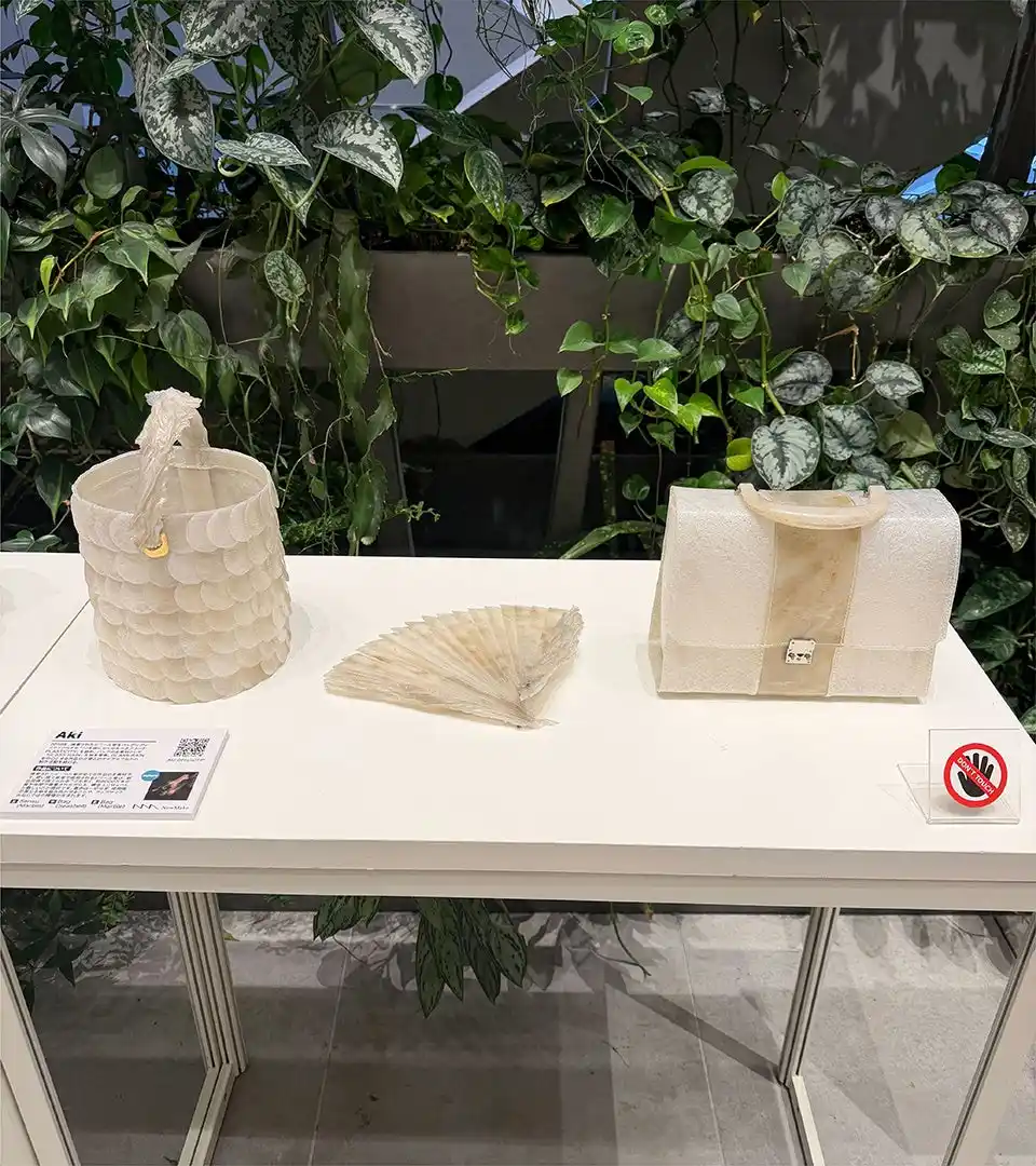 ■Aki プロフィール:2019年、廃棄されたビニール傘をバッグにアップサイクルする「10年後になくなるべきブランド PLASTICITY」を始め、バッグの主素材として「GLASS RAIN」生地を考案。GLASS RAINを中心とする作品や企業とのタイアップなどの制作活動を続ける。 |