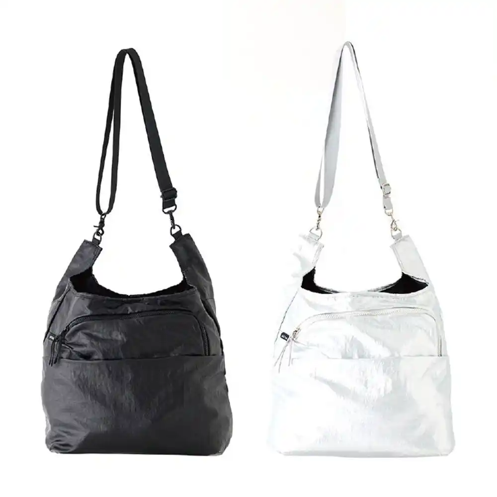 開口部にはプラスチックバックルを使用しており、片手でもスムーズに開閉可能。シンプルなデザインながらも、アクセントとしてバッグ全体の印象を引き立てる役割も果たしています。 |