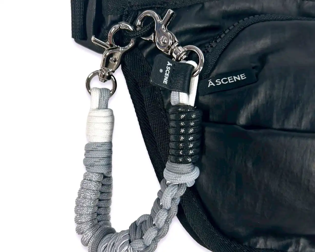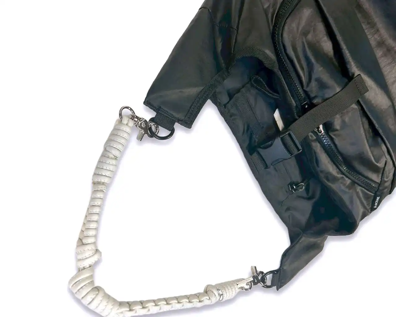 取り外し可能なナイロンテープが付属しており、別売りのDesign paracord strapと組み合わせて肩掛けや斜め掛けも可能。シンプルなデザインだからこそ、自分好みにアレンジしてお楽しみいただけます。 |