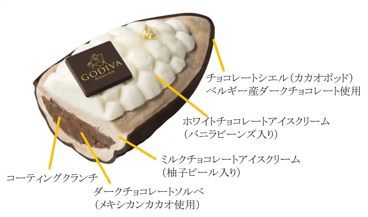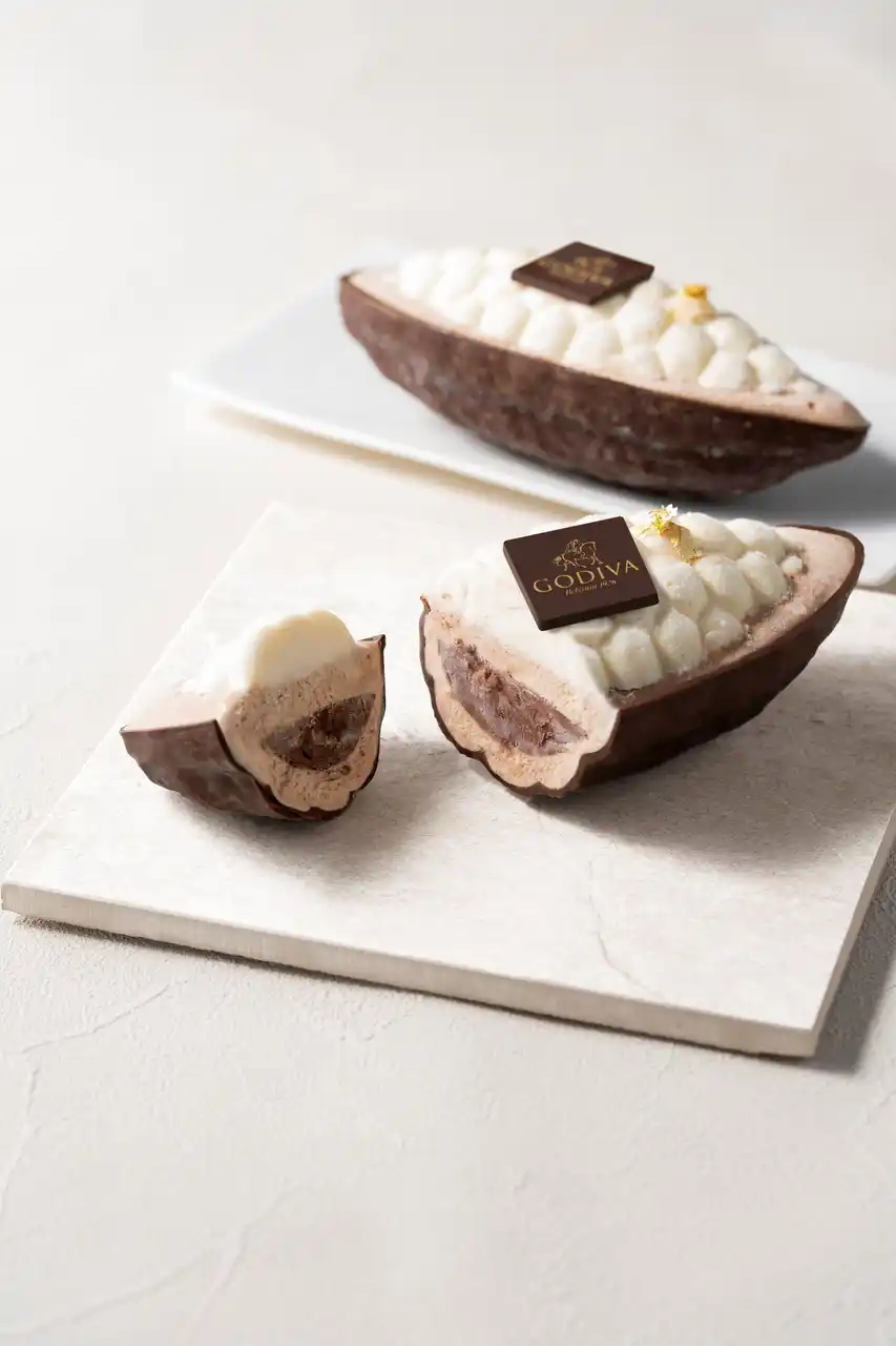 ゴディバの象徴でもあるカカオの魅力を、アイスクリームケーキで表現しました。 |