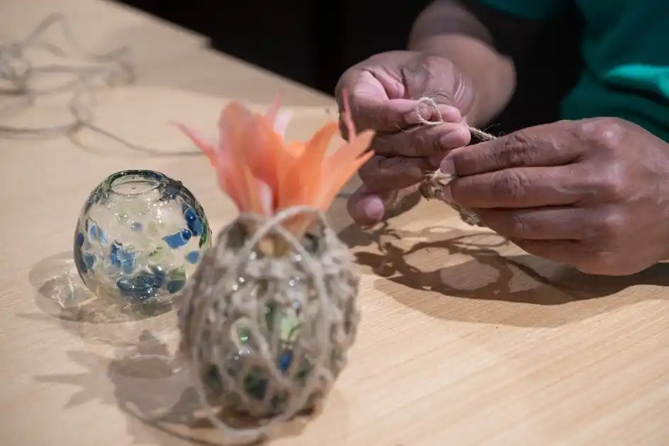 「リゾートから出るガラス瓶が、私たちの手によって美しい工芸品に生まれ変わる。このプロセスは、地域に新たな誇りと雇用を生み出します。観光客の皆様が、このフラワーベースを手に取ることで、資源循環の大切さを感じてくだされば、これほど嬉しいことはありません。今後も技術を磨き、連携を強化していきたいです。」 |
