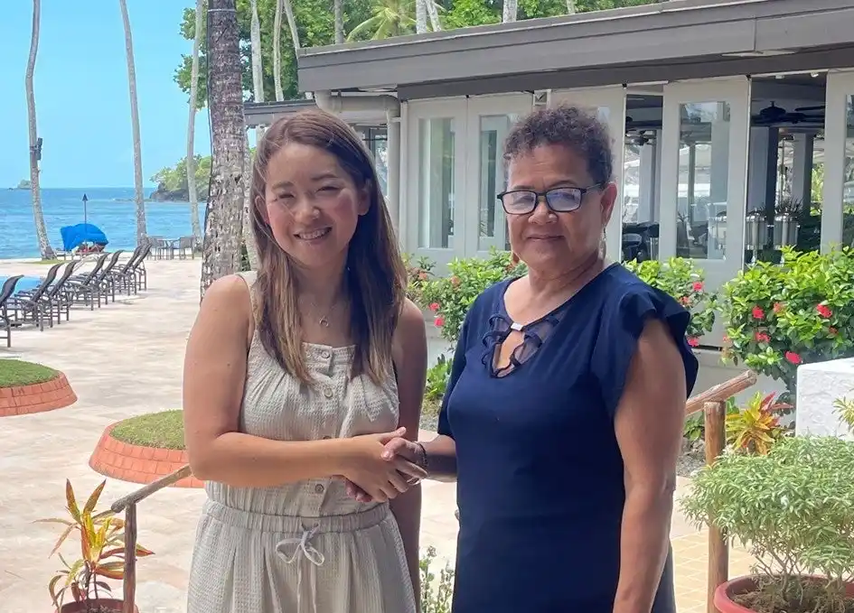 左から、TRUE BLUE共同代表 玉村めぐみ氏、パラオ パシフィック リゾート総支配人 Lucy Sugiyama |