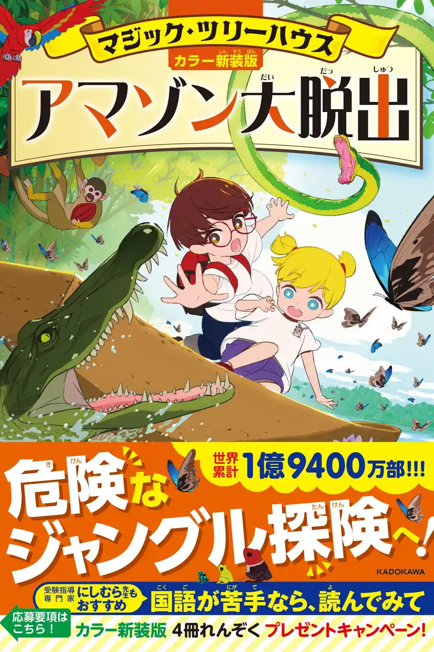 株式会社KADOKAWA(本社:東京都千代田区、取締役 代表執行役社長 CEO:夏野剛)は、世界累計1億9400万部、40か国で読まれている大人気シリーズ「マジック・ツリーハウス」の新装版3冊目『[カラー新装版]マジック・ツリーハウス アマゾン大脱出』を2026年3月18日(水)に発売いたしました。今回の冒険の舞台は、アマゾン川。子どもが熱中する「すごい本」のひみつに迫ります。