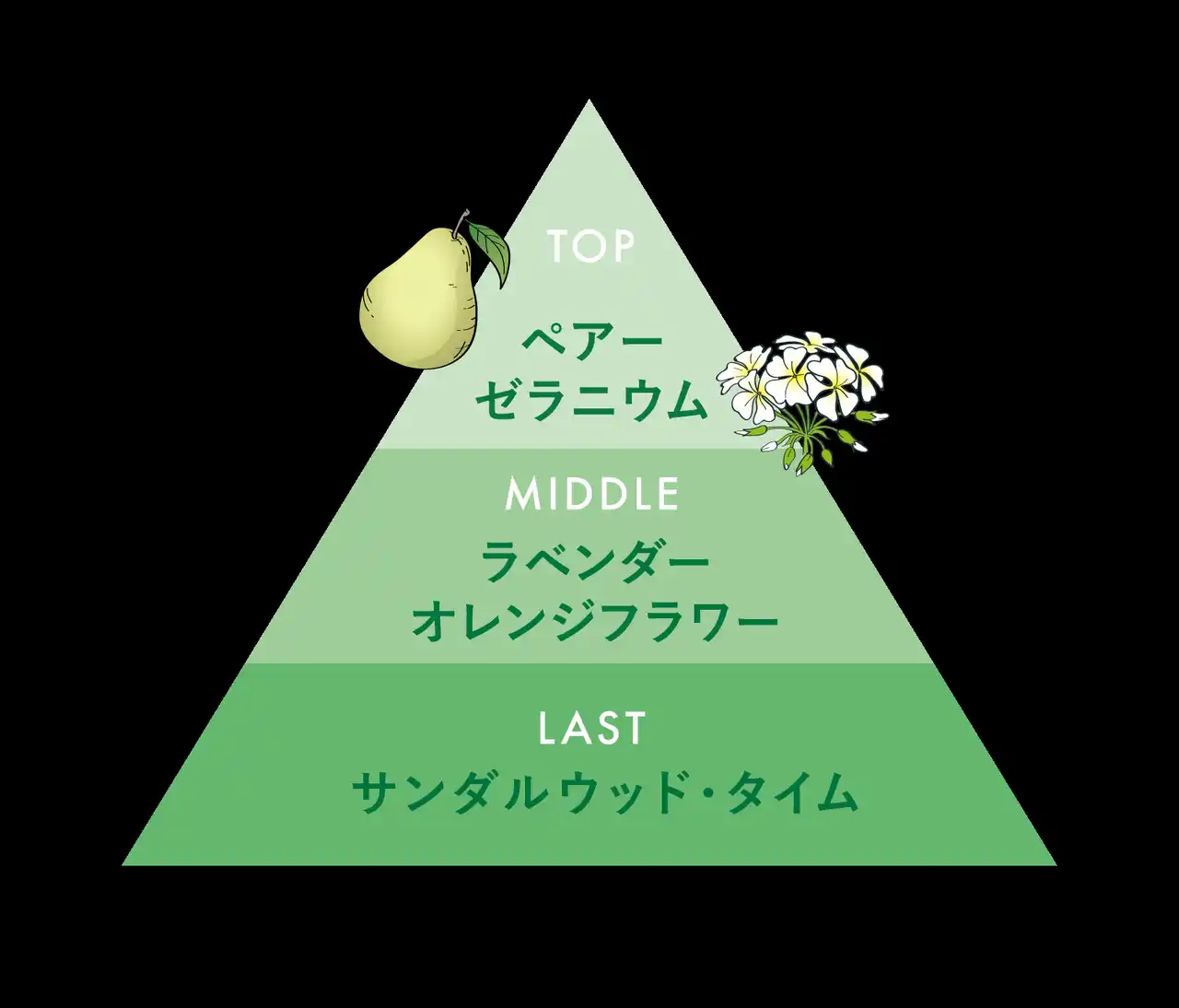 [4] 上質で落ち着いたフレグランス、みずみずしく清々しいペアーとゼラニウムの香り |