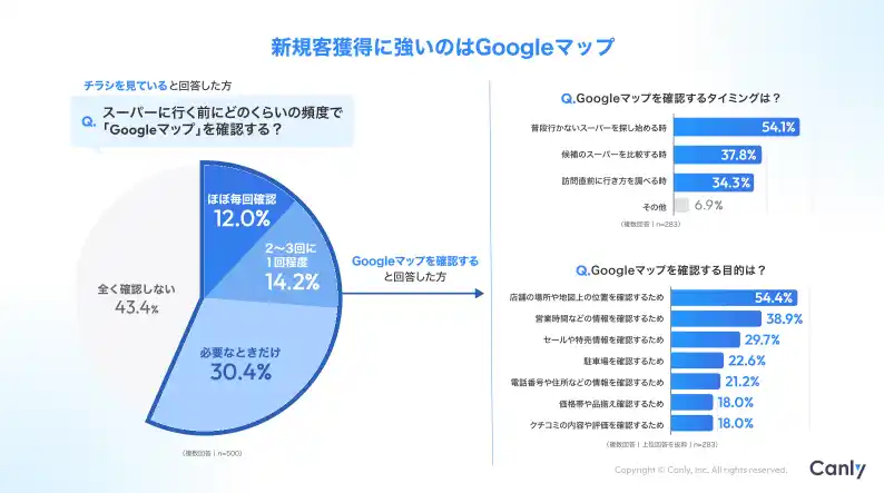 | Google ビジネスプロフィール(TM)︎・HP・各SNSの一括管理サービス「カンリー店舗集客」の開発・提供を行う株式会社カンリー(所在地:東京都品川区、代表取締役:辰巳 衛,秋山 祐太朗)は、スーパー業界向けに【「そのチラシ、新規客には届いていますか?」食品スーパーがGoogle マップを整備すべき理由】を無料公開しましたので、ご案内いたします。 | |||||||||||