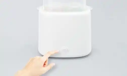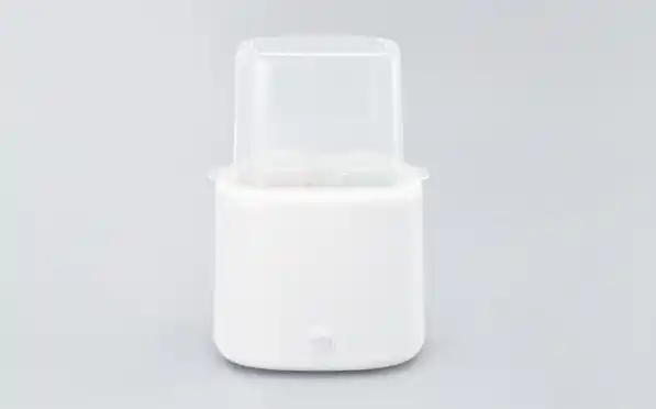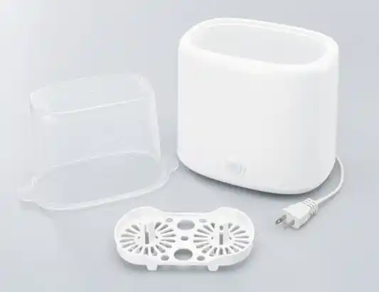 付属のカップに水を入れ、洗浄後の除菌したいものを入れてボタンを押すだけで、除菌を開始します。 |