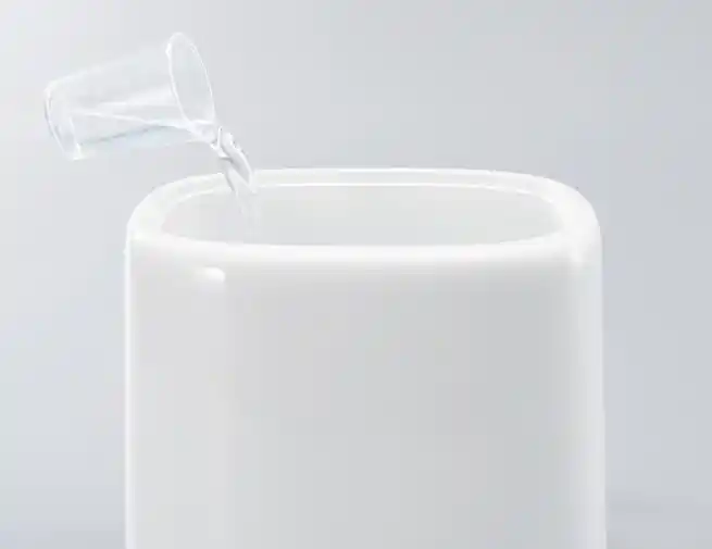 除菌に必要なのは水50mlのみ。付属のカップで計量できます。 |