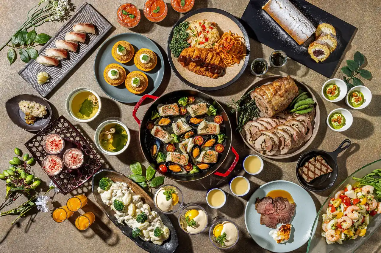 その他にも、当レストランのシグネチャーメニュー 国産牛ローストのカッティングや、寿司職人が目の前で握る寿司、パティシエがその場で仕上げるスイーツなど、ホテルブッフェならではの豊富なパフォーマンスメニューもお楽しみいただけます。 |