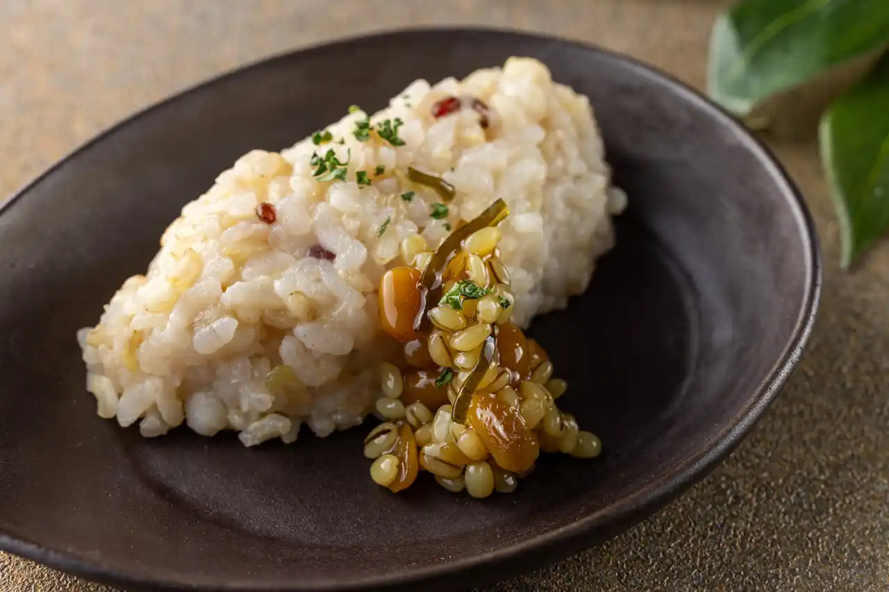 パルミジャーノ・レッジャーノ雑穀米のリゾット 喜代屋島原納豆みそ添え |